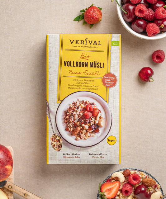 We source high-quality organic ingredients and transform them into naturally delicious porridges, mueslis, and granolas by hand in the heart of Tirol. We’re proudly supporting healthier mornings and have been for over 30 years.