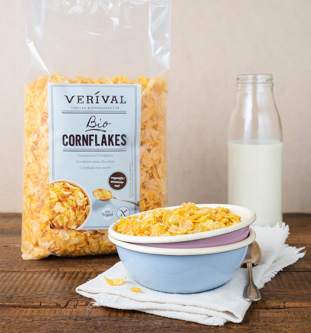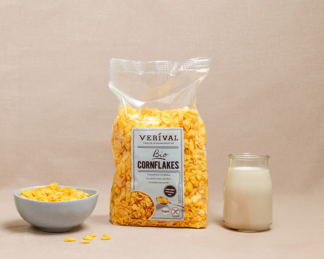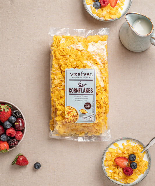 At VERIVAL, you can buy your cereals easily and conveniently online. Our cereals are available in many different varieties and forms: as muesli, puffed cereals, cornflakes, breakfast cereals and many more. Cereals are very popular for breakfast with young and old - and for good reason. Our VERIVAL breakfast products are certified organic and are produced gently and sustainably using the highest quality ingredients. Are you looking for a healthier alternative to cereals? Our cereals are a plausible solution for you and your children. You can easily order them in the online shop and have them delivered to your home.