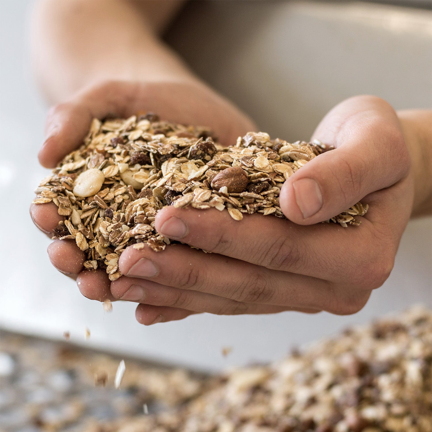 Simon from our purchasing department, works with our quality assurance team to select the high-quality organic ingredients for our porridges, granolas and mueslis and is in close contact with our partners and suppliers. He is also responsible for our packaging management.