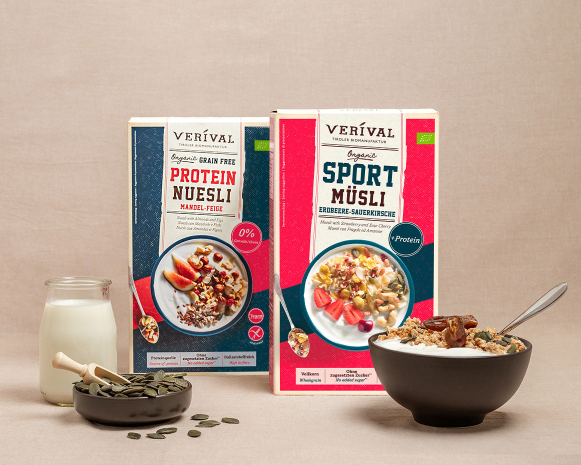 Il s'avère que les protéines remplissent des fonctions importantes avant et après l'entraînement. Que tu prennes ton petit-déjeuner avant ou après le sport, notre muesli protéiné et notre porridge VERIVAL...