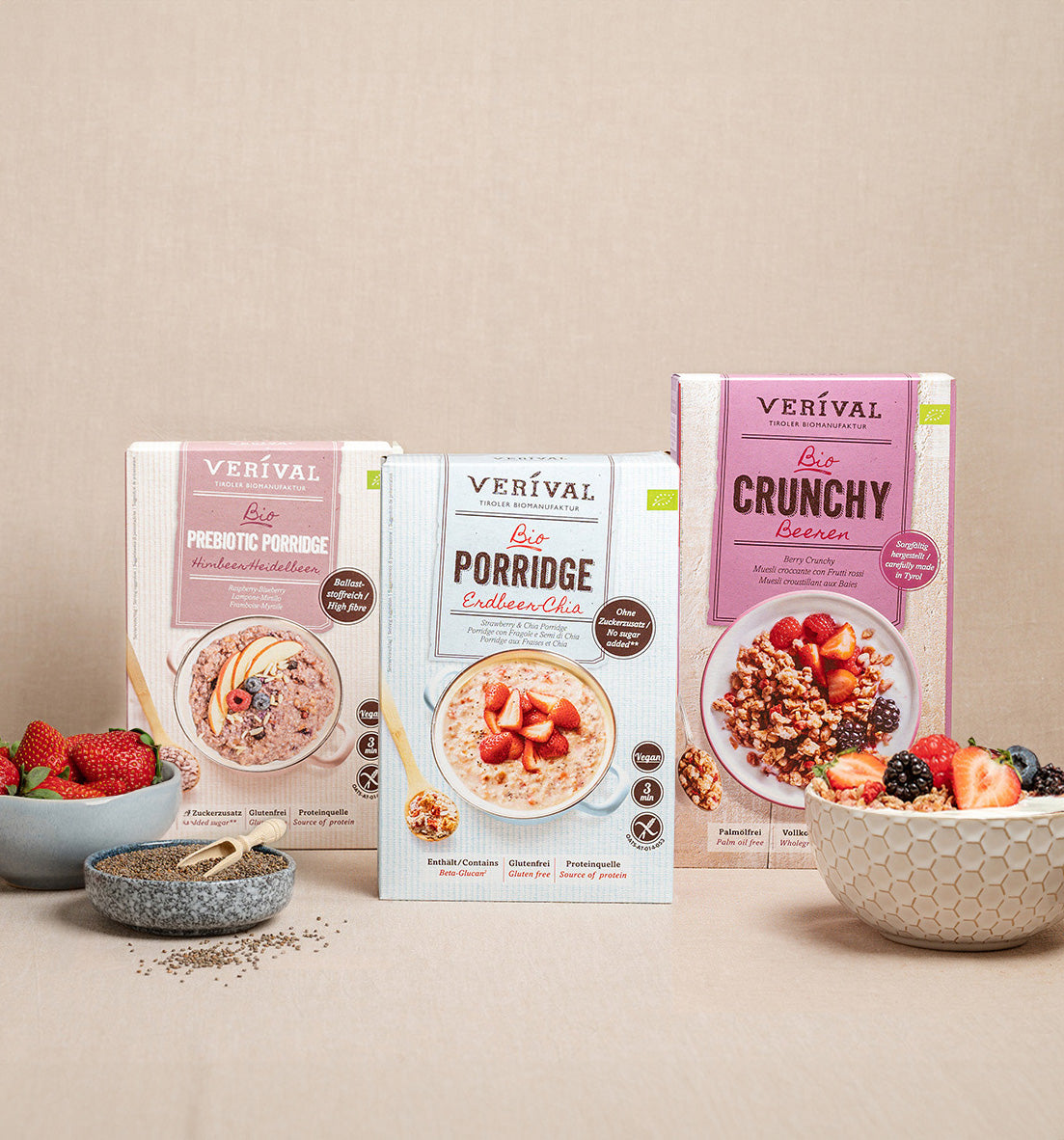 Per Verival, ogni muesli, granola, croccante e porridge è prodotto con cura in Tirolo. Utilizziamo solo ingredienti biologici di alta qualità nella nostra fabbrica biologica di Langkampfen. Per quanto riguarda i partner e i fornitori, prestiamo attenzione alla regionalità quando possibile e ci concentriamo esclusivamente sulla qualità biologica, sulla sostenibilità e su condizioni di lavoro eque.