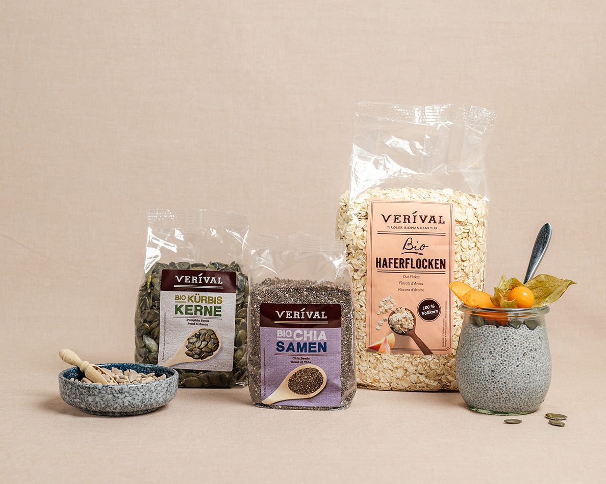 Deliziosi fiocchi, semi e kernel biologici per supportare la tua dieta sana
