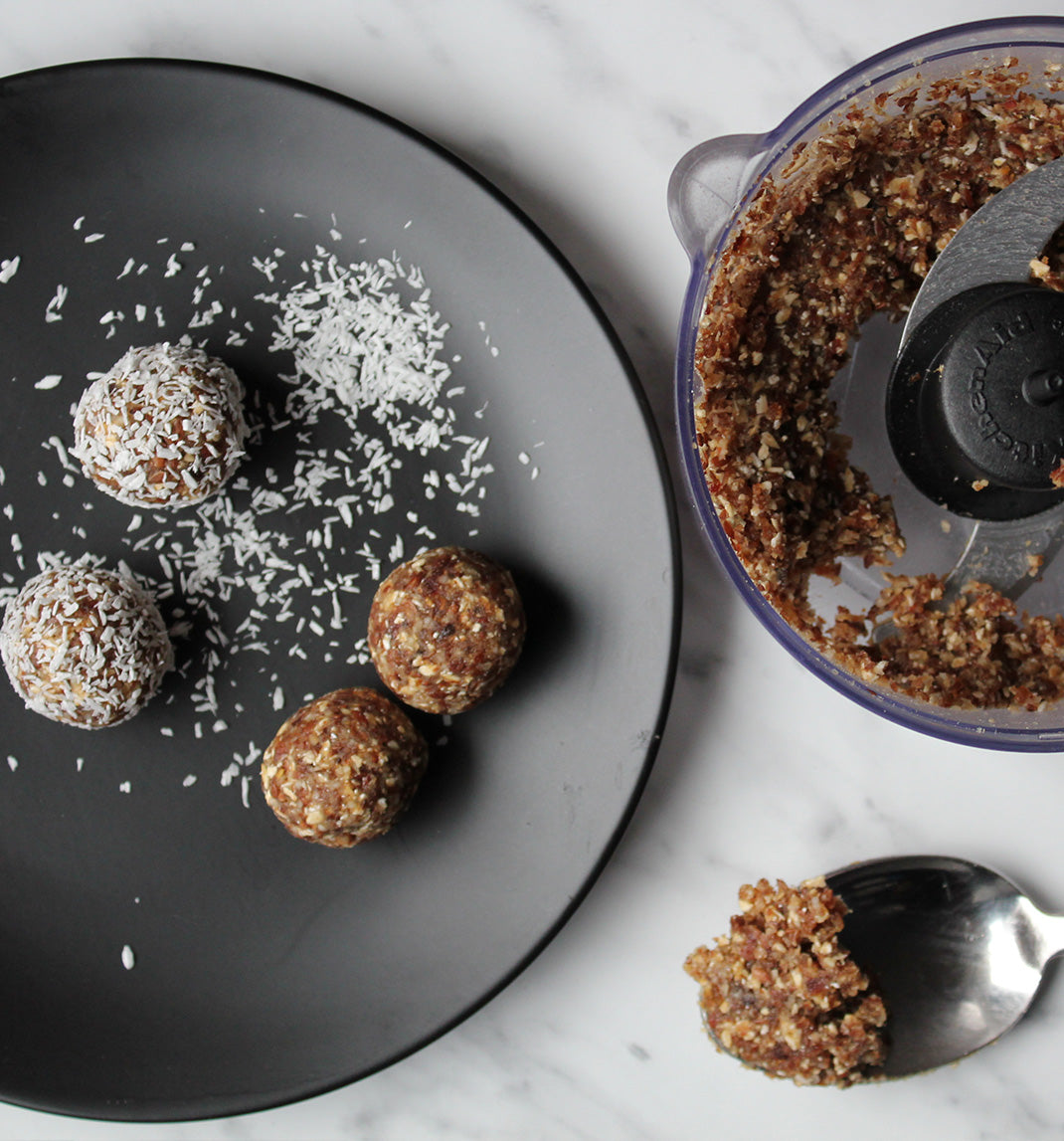 Le palline energetiche sono un'ottima idea per uno spuntino veloce. Basta mescolare 70 g di avena, 30 g di noci, 10 g di cacao, 4 datteri secchi e snocciolati, 1 pizzico di cannella, 2 cucchiai di burro di mandorle, 1 cucchiaio di olio di cocco e mettere tutto in un frullatore. Forma il composto in piccole palline. Il tuo spuntino sano tra un pasto e l'altro è pronto.