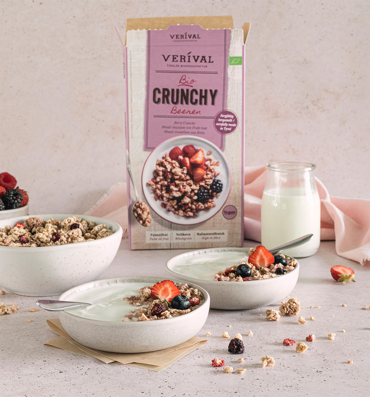 Bei Verival glauben wir daran, dass ein guter Tag mit einem guten Frühstück beginnt. Deshalb verwenden wir für unsere Frühstücksprodukte ausschließlich hochwertige Bio-Zutaten.