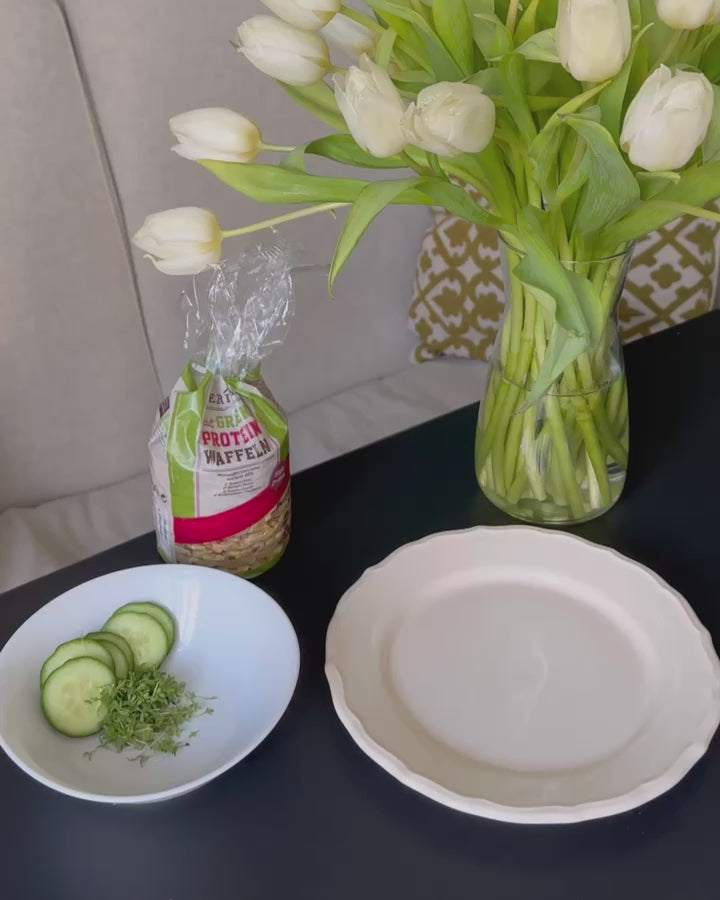 Ihren hohen Proteingehalt und die hübschen Farbtupfer verdanken die Green Protein Waffeln einem Anteil von 46% Hülsenfrüchten: Erbsen, Bohnen, Linsen und Kichererbsen. Mais und Erbsenprotein runden den Proteinsnack ab und liefern zusätzliche Nährstoffe. Die Waffeln eignen sich als schneller Snack vor oder nach dem Sport oder als Zwischenmahlzeit mit Brotaufstrichen und diversen Toppings.